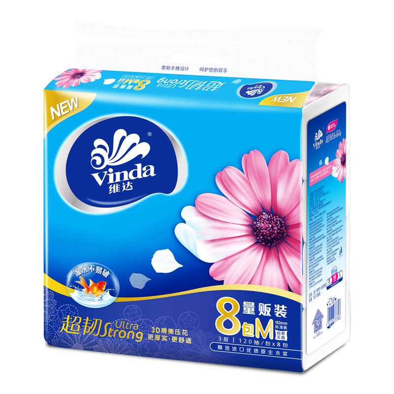 維達超韌抽取式面巾紙(zhǐ)120抽8包裝