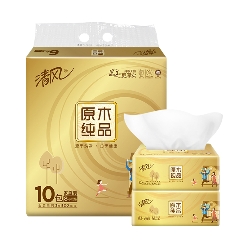 清風(fēng)原木(mù)金(jīn)裝3層120抽軟抽10包裝