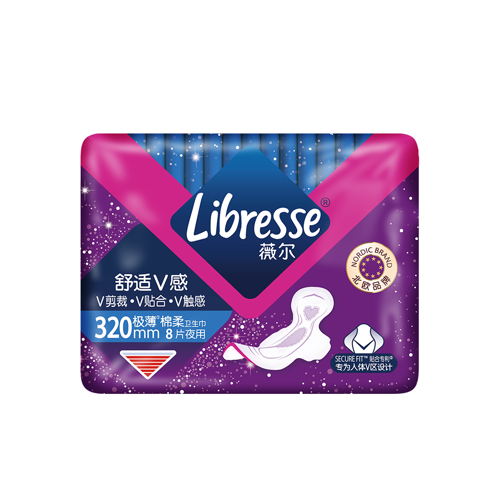Libresse薇爾舒适V感320夜用(yòng)8片極薄棉柔衛生(shēng)巾