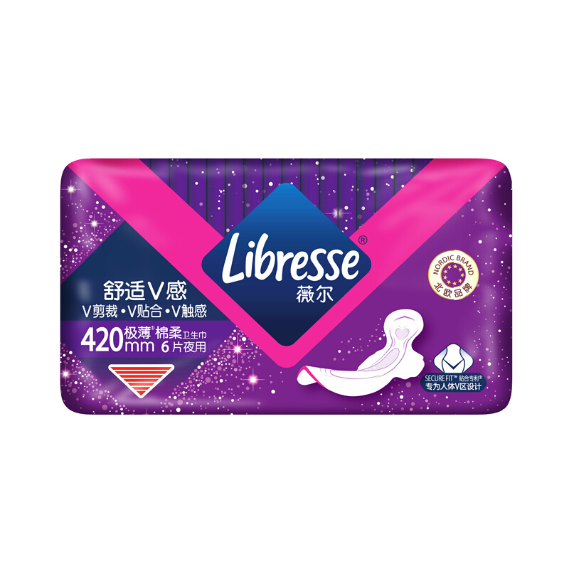 Libresse薇爾舒适V感420加長(cháng)夜用(yòng)6片極薄棉柔衛生(shēng)巾