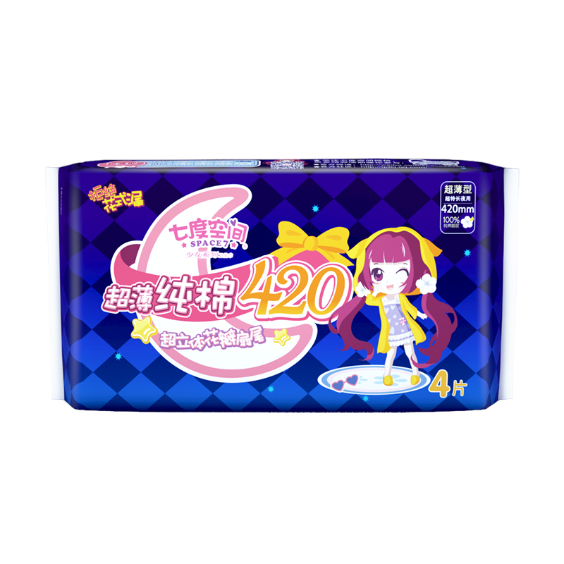 七度空(kōng)間(jiān)純棉超薄420mm加長(cháng)夜用(yòng)4片